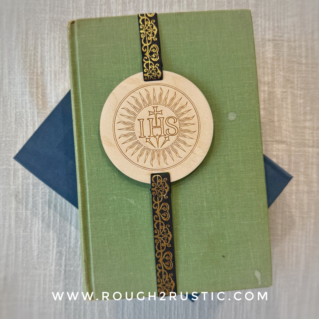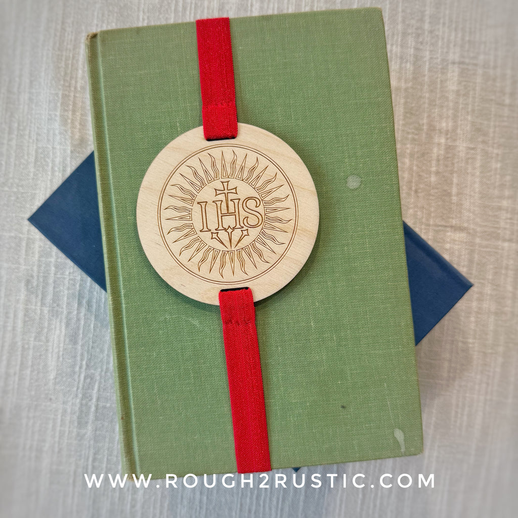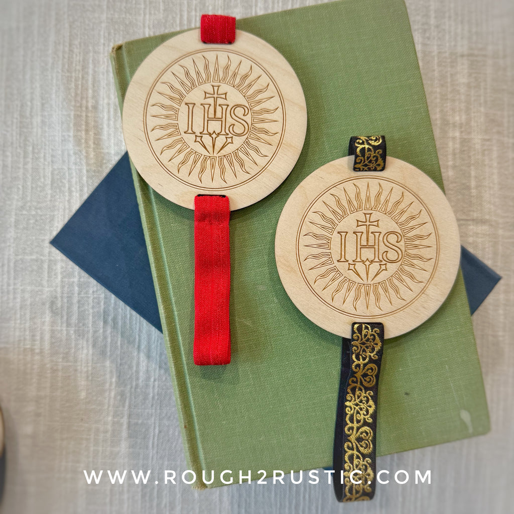 The IHS design is engraved into these unique and beautiful wood bookmarks.